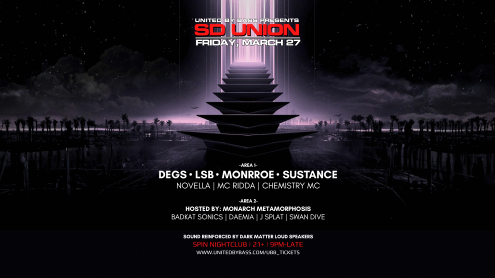 SD Union returns March 27 at Spin Nightclub with Degs, LSB, Monrroe & Sustance. A massive Drum & Bass showcase in San Diego. … Continue readingFour UK DNB Heavyweights touch down at SD Union
